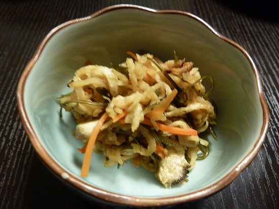 これは(え)が舞茸とニンジンとだしをとった後の昆布を千切りに