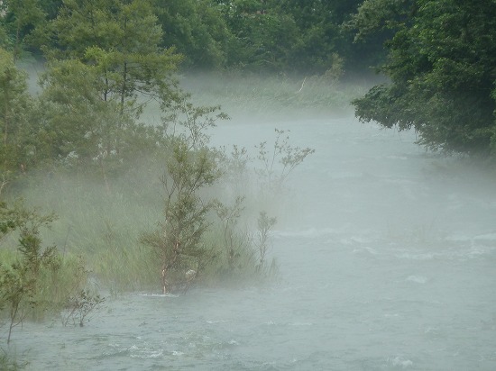 湖畔からの帰り 珍しい風景先達川の川霧