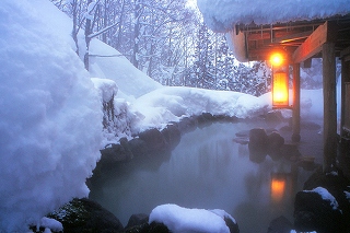 写真のような雪がどっさり積もった雪見風呂が楽しめるのは