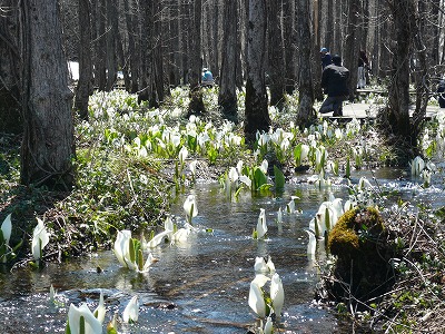 昨日(4/20)の刺巻ミズバショウの開花状況を