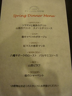 この日のディナーメニュー