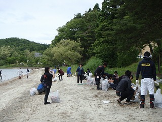 60名近くの参加者で、遊泳場~蓬莱の松付近までの清掃を行いました。