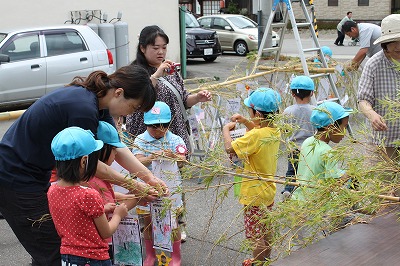 一生懸命に短冊を笹竹につけている姿・・・かわいかった~