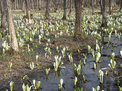 3haのハンノキ林に6万株のミズバショウが群生するさまは圧巻です。