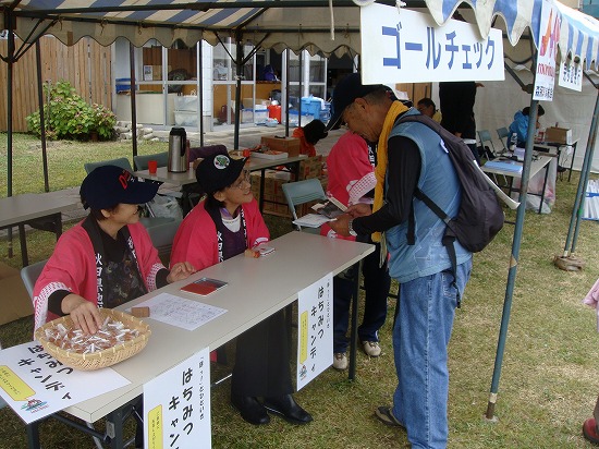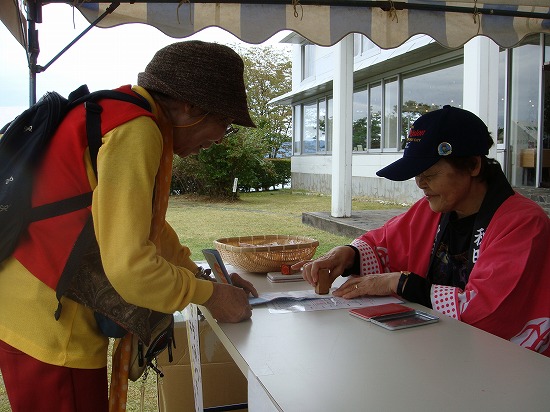 ゴールチェックでは地元のお母さんたちが笑顔でお出迎え