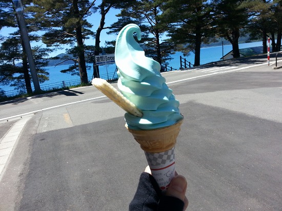 田沢湖のように青いソフトクリーム その名も「辰子伝説」