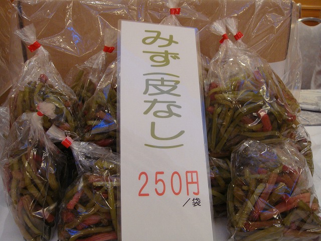 地元産『みず』や『わらび』の販売。これが楽しみでいらっしゃるという方も