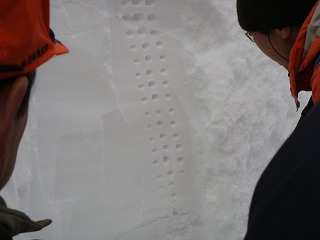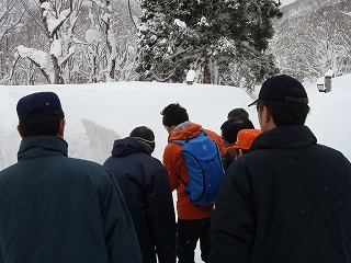 当協会理事・雪崩検定員の小野さんのレクチャーを受けながら、目視による確認を行い、