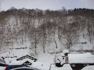 県道から鶴の湯温泉までの道路及び建物は除雪され、建物付近は防雪柵が設置されており、特に異常なし。