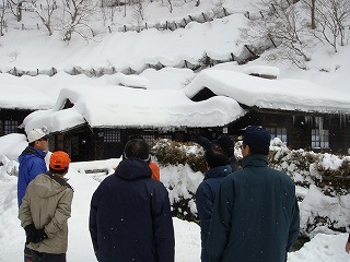 県道から孫六温泉までの道路及び建物は除雪され、建物付近は防雪柵が設置されており、特に異常なし。