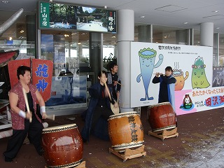暖かくなったらまた来てね!キャンペーン龍神太鼓・たっこちゃん・なまはげが登場します