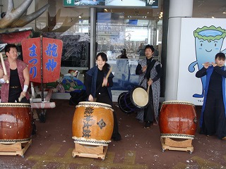 今年初の龍神太鼓の音色がJR田沢湖駅ホームに響き渡りました