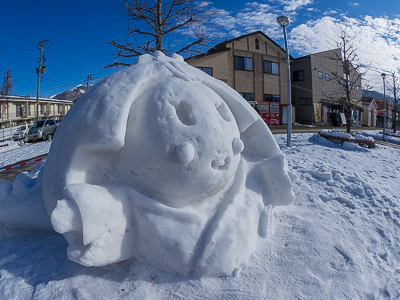 ペンションクライマーのご主人による力作「たっこちゃんの雪像」