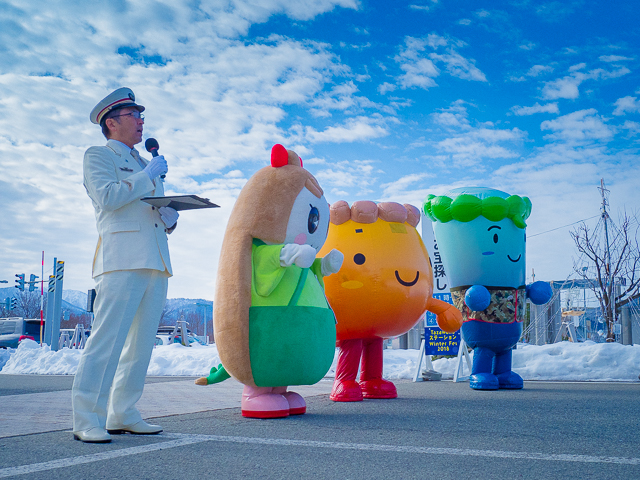 澄んだ空気の中、田沢湖駅長によるご挨拶