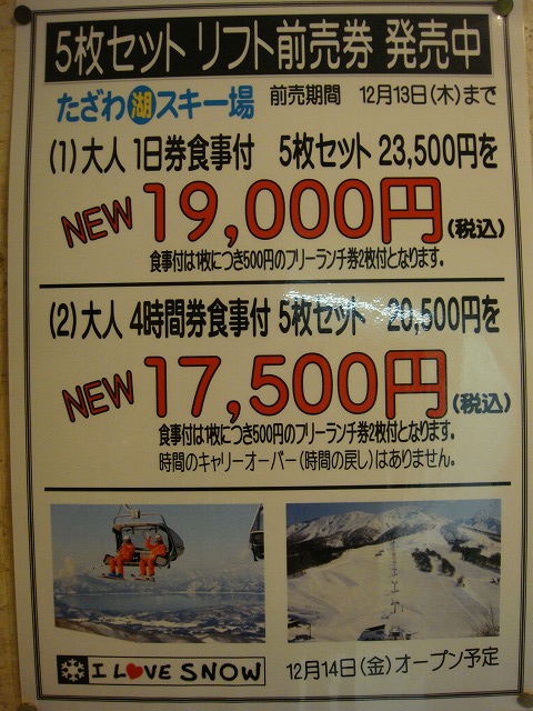 たざわ湖スキー場のオープンは12月14日(予定)
