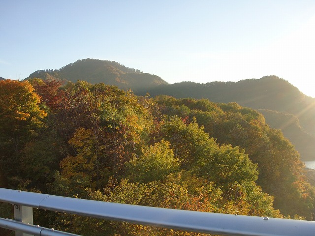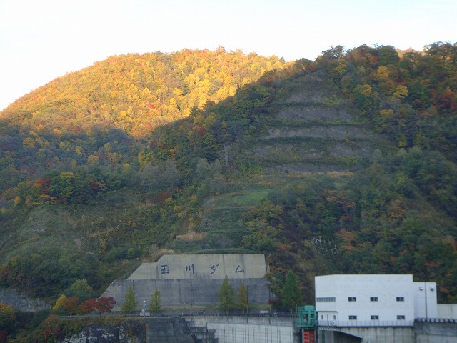 そして玉川ダム。夕日に紅葉の黄色が映えます。