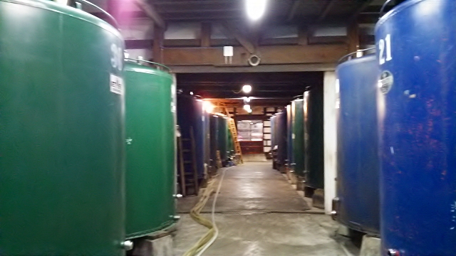 ひとつのタンクに日本酒4,000本分のお酒が入るとか![]()
