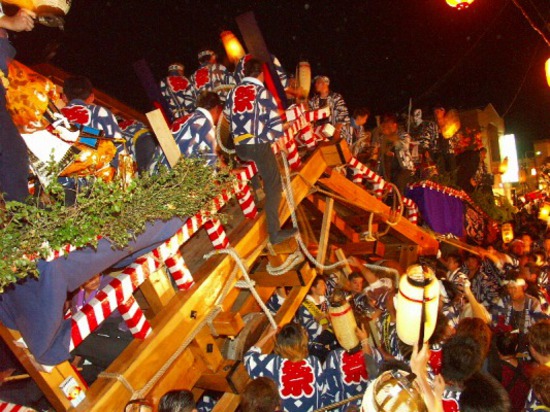 8日:午前10時から各曳山が佐竹北家に上覧、観光山ぶっつけ、