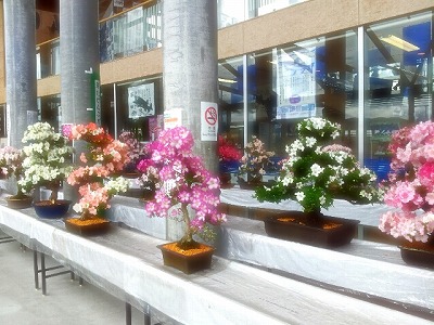 現在田沢湖駅構内では、さつき愛好会の方々のさつき展示会と
