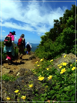 >キバナノコマノツメ、、サンカヨウ、ベニバナイチゴ、ミツバオウレン、ミヤマキンバイ、ミヤマダイコンソウ、