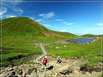 男岳鞍部から馬場の小路(ムーミン谷)⇒急斜面、一部崩落しています。ご注意ください。