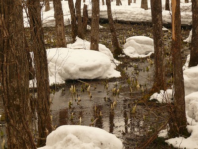 昨年よりも積雪&降雪が多いため、雪解けが若干遅れている模様です