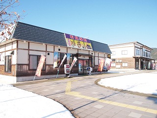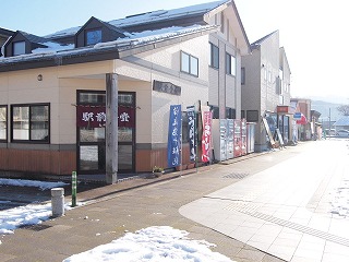 駅前にはたくさんの食堂、喫茶店、物産展などがあります