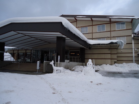 二人はこのように休暇村乳頭温泉郷の玄関先で