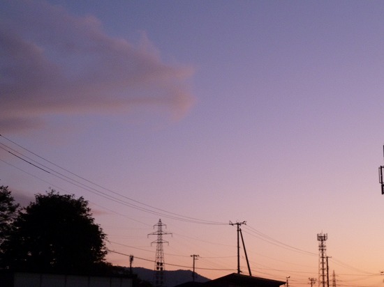 今日の夕焼けは青空と流れる雲の色のコントラストが