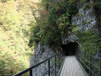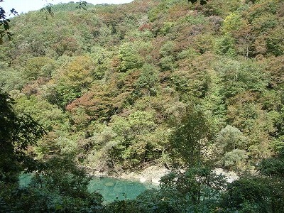 爽やかな秋晴れの日、(み)は抱返り渓谷<回顧の滝>を