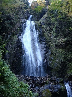 爽やかな秋晴れの日、(み)は抱返り渓谷<回顧の滝>を