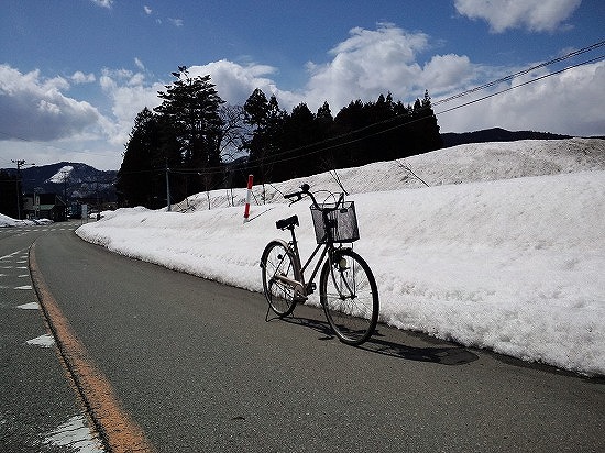 ▲一緒に行動した自転車。道路脇にはまだ雪が残ってましたが…