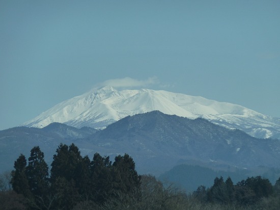 真っ青な空に依然として真っ白な秋田駒ケ岳がそびえています。