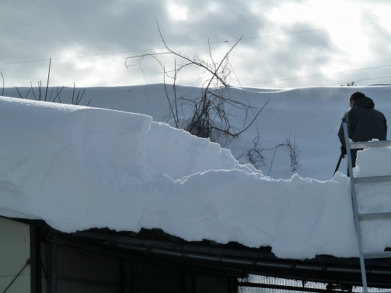 車庫の屋根の雪下ろし作業となりました。