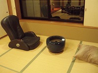 貸切家族露天風呂は寛ぎ処が付いており、お風呂を満喫した後に