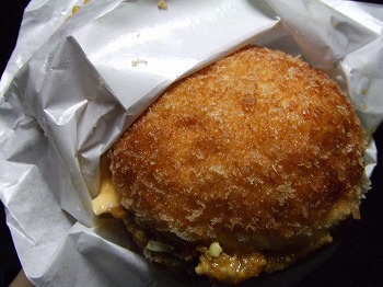 このパンは自家製で、見ての通りカレーパン風にパン粉をつけて揚げてます