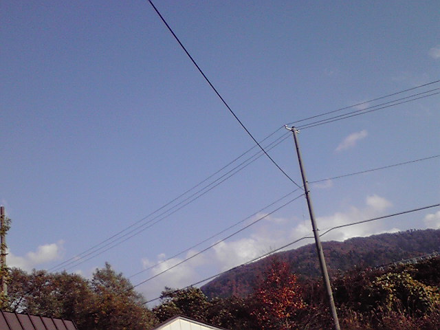 事務所の窓から辺りの山々(遠くの山は紅葉終了??)