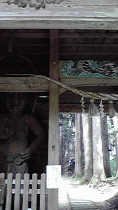 一本杉から彫られたという仁王像が山門の両側に建っています。