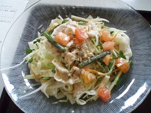 780円ごまドレッシングを使用しており、B麺の上には野菜たちがどーん