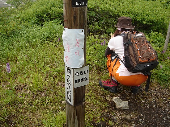 八合目小屋からすぐの所に乳頭山に繋がる笹森山への分岐があり