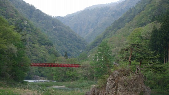 新緑のグリーンと赤い橋がとっても鮮やかですね~