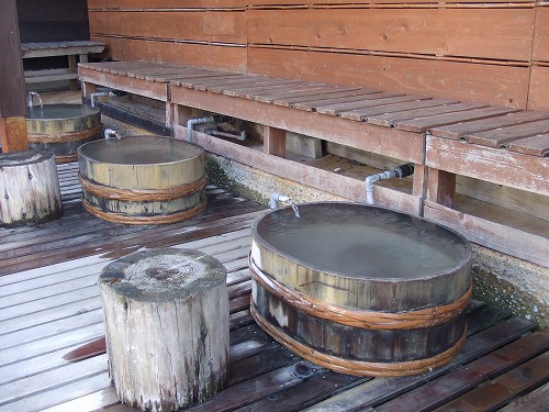 足湯の桶が3つ並んでいました