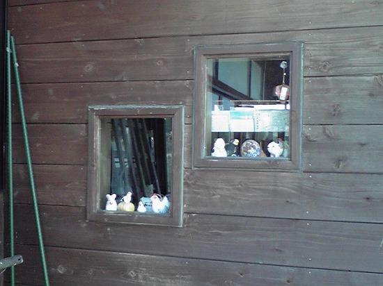 窓から中を覗いてみたらたくさんの土鈴たちが並んでいました。