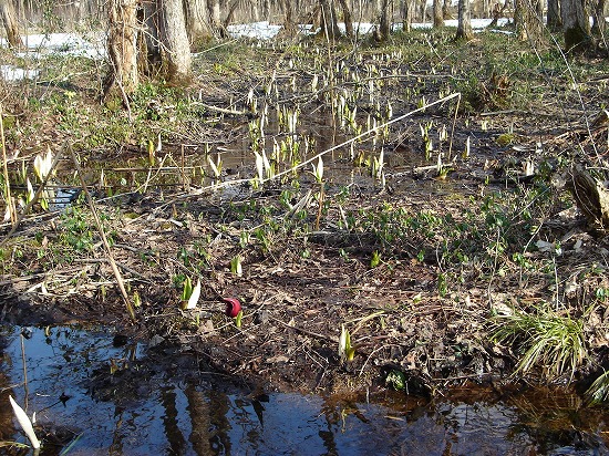 ここも、雪がとけたら順につぼみが顔を出し始め、一面ミズバショウに変ります