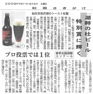 「湖畔の杜ビール 特別賞に輝く」という記事を発見しました。