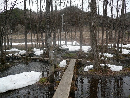 木道の雪はとけていますね~ 湿原内もだいぶ雪が消えました