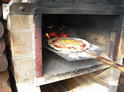 自慢の石釜トーマス(電話ボックス改良型!)に入れ、数分で焼き上がり