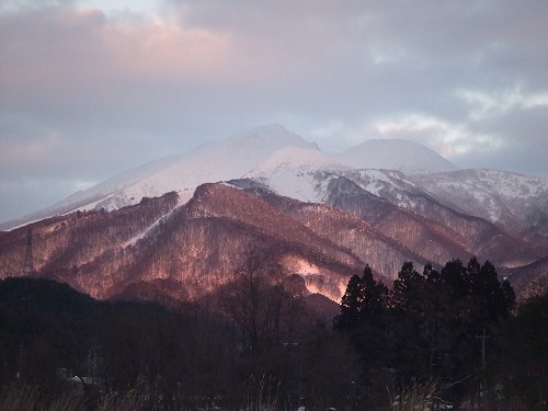 最後に、自宅前から一昨日写した綺麗な夕焼けと秋田駒ケ岳です