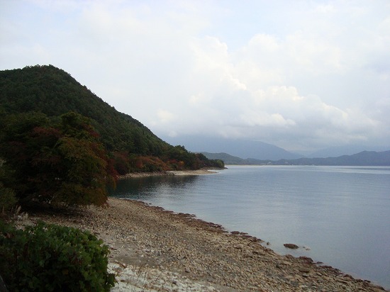 少し曇り加減の湖岸の様子。