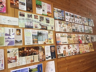 壁には宿泊施設や観光施設のパンフレットが
